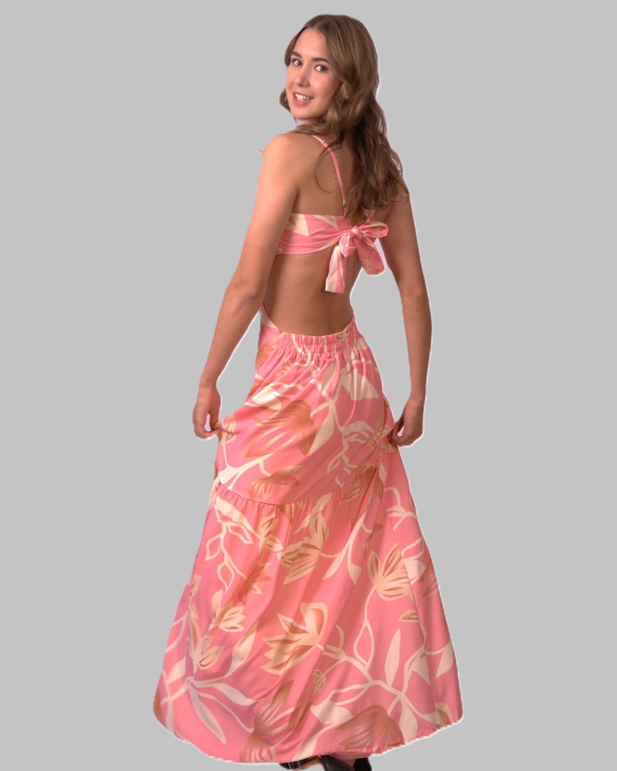 Maxi dress with front knot, back tie and breathable fabric Light Pink Edition