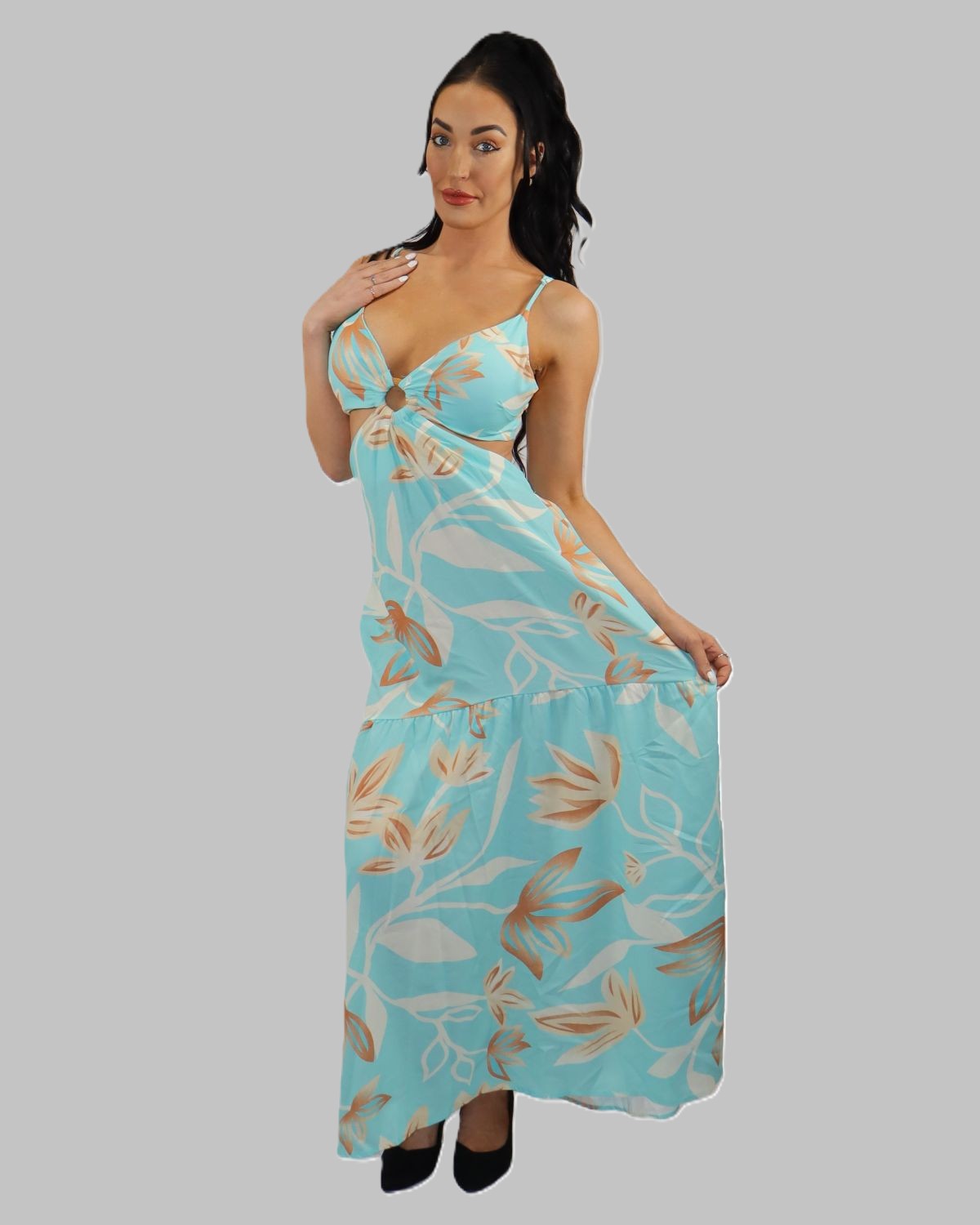 Maxi dress with front knot, back tie and breathable fabric - Baby Blue Edition