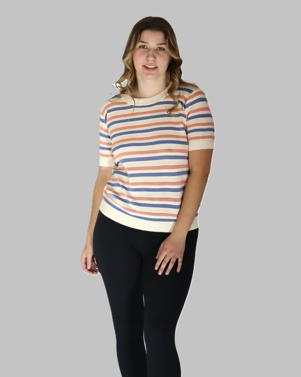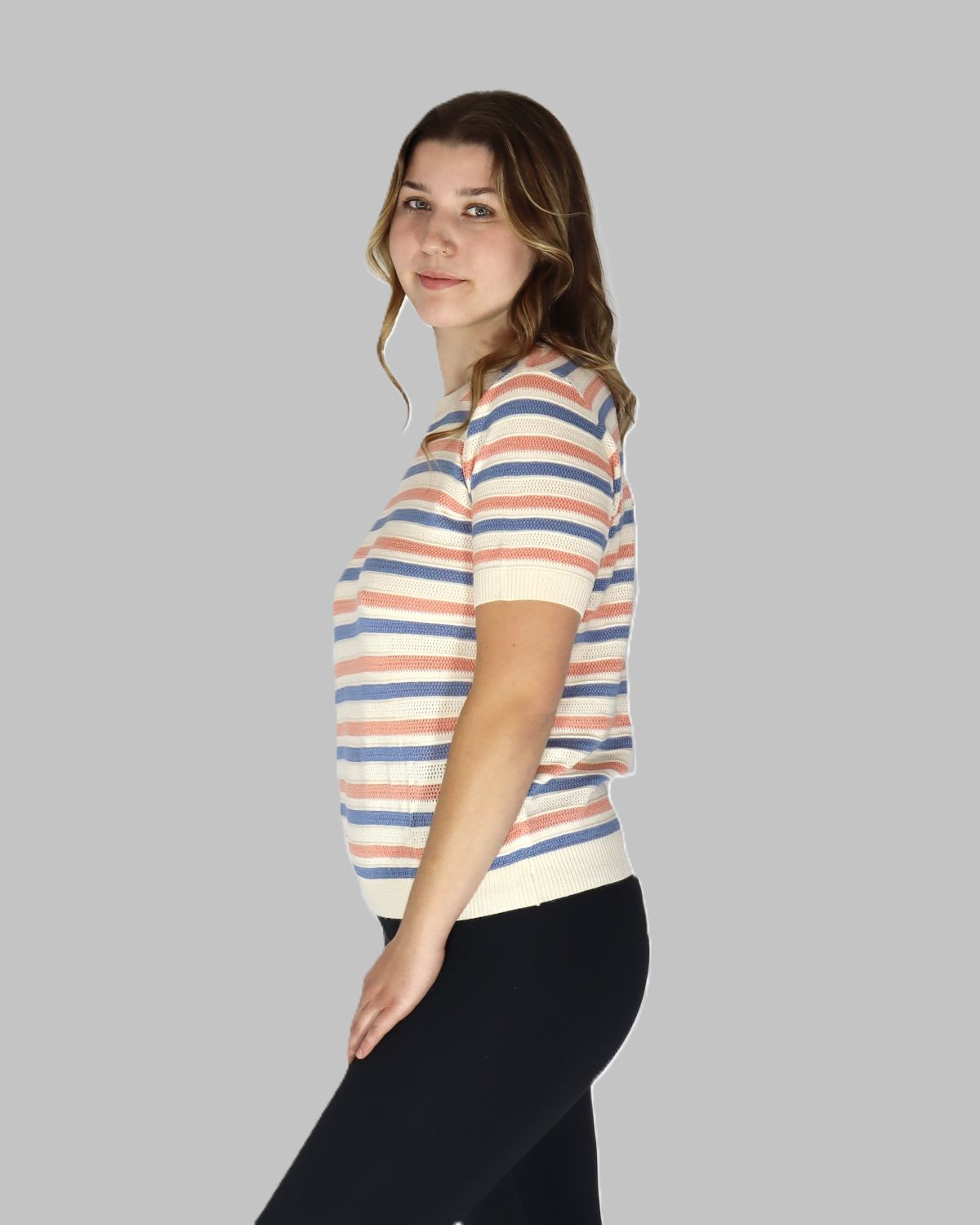 Lilac, Peach & White Striped Knit Top