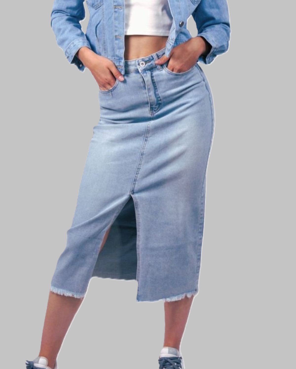 Chic Knee-Slit Denim Skirt-Stylish Comfort