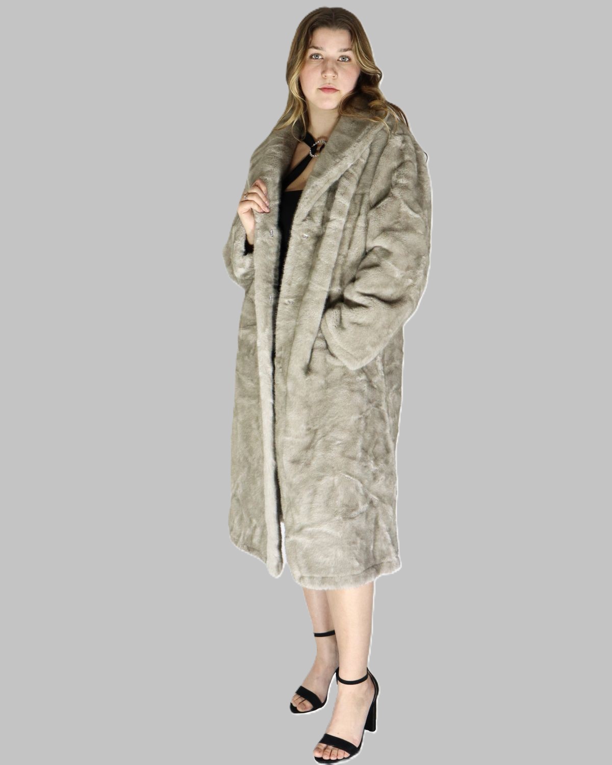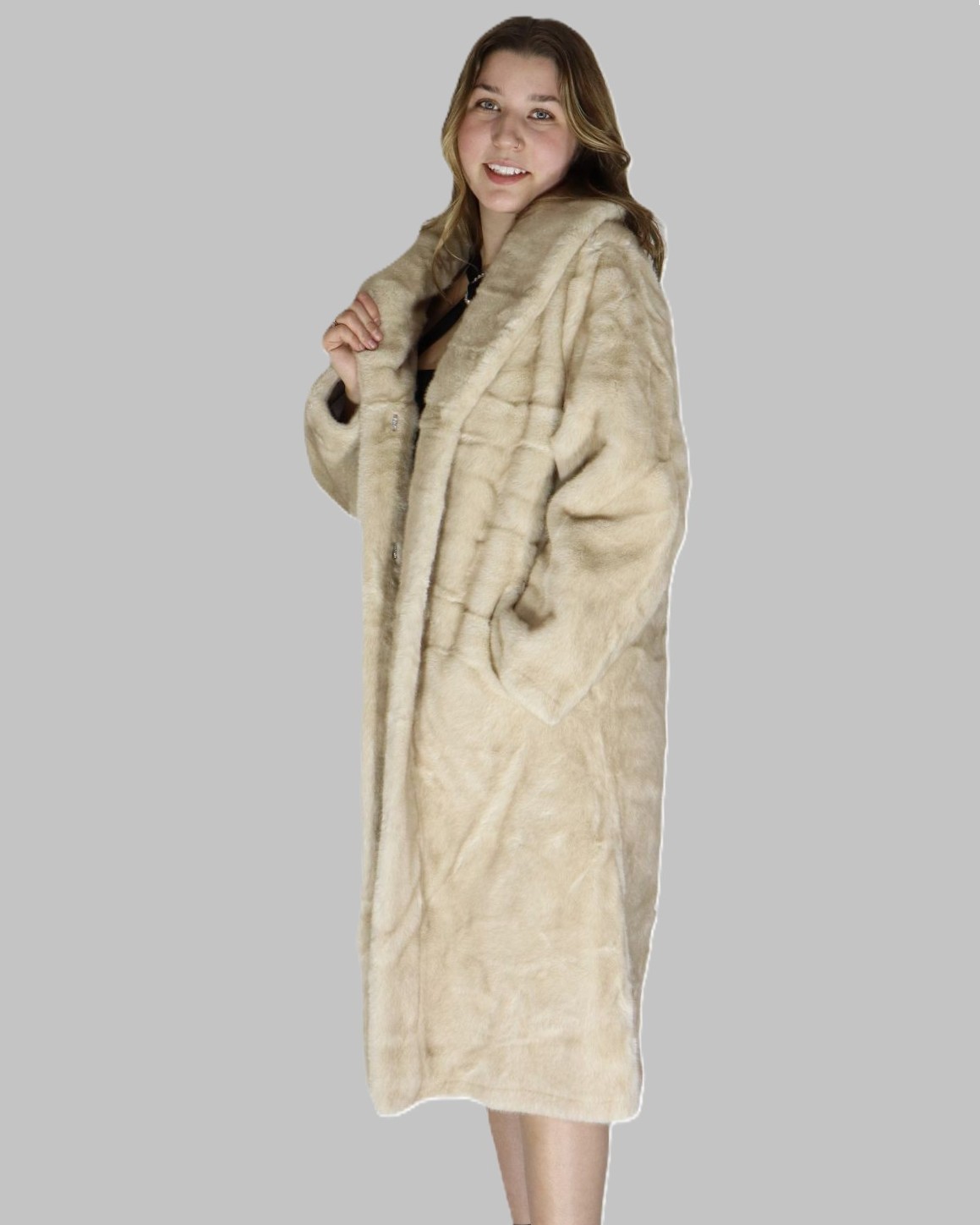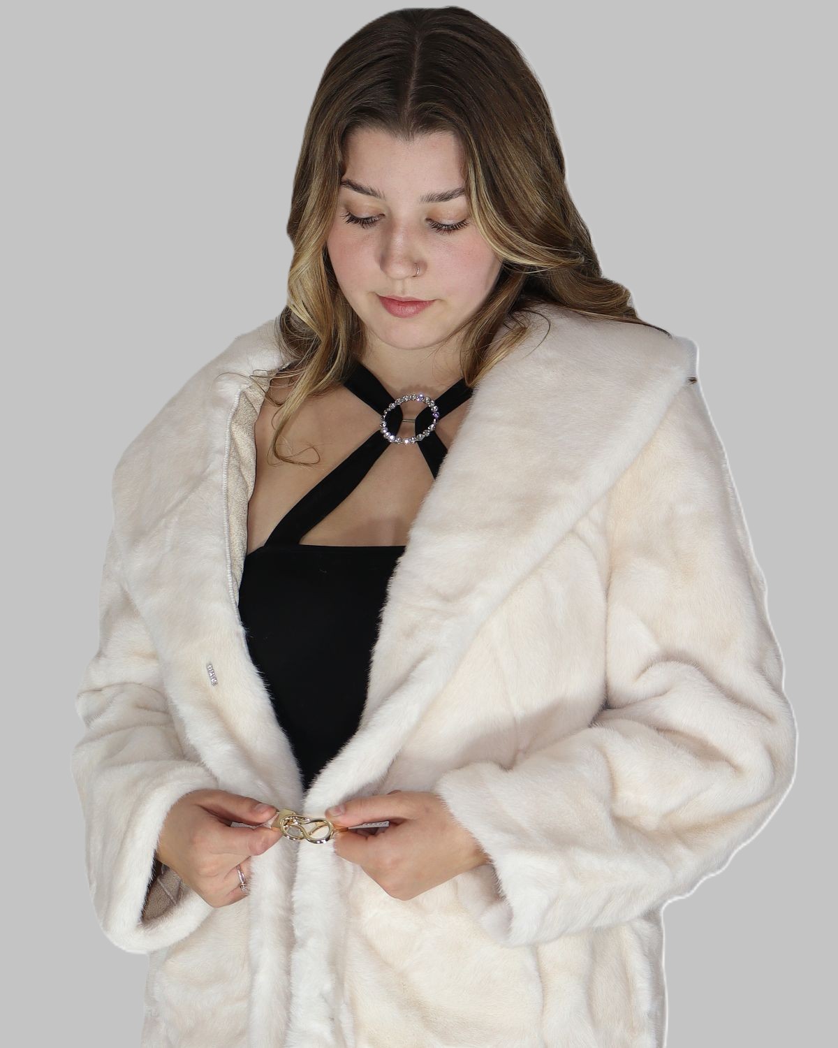 Felautia Luxe Long Fur Jacket with Stone-Detail Buttons
