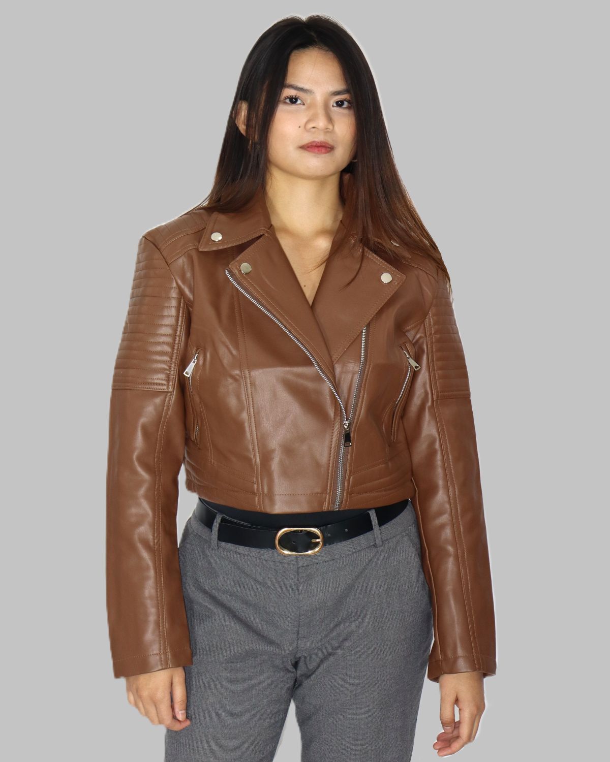 Felautia Luxe Leather Jacket with Silver Color Zipper