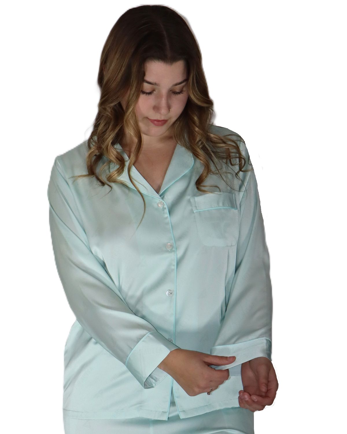 Unwind in pure elegance with the Felautia Luxe Silky Pajama Set-Sea Green Edition. Made from the same butter-soft, shiny fabric as our signature loungewear, this set features a tone-on-tone logo print, slightly lighter than the fabric color, for a subtle, sophisticated look.