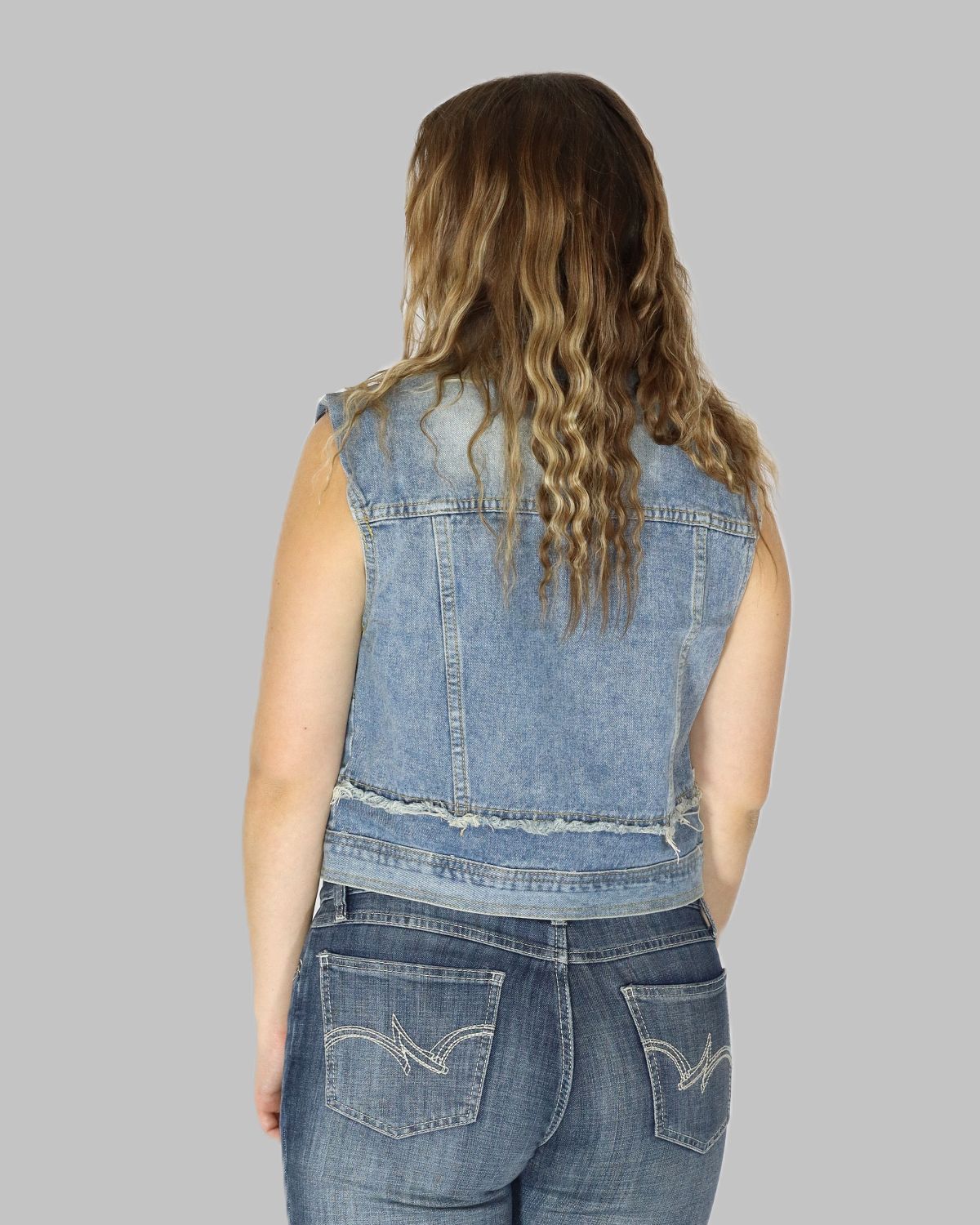 Step into timeless style with our Classic Sleeveless Denim Jacket, crafted for effortless layering and everyday confidence. This piece blends the rugged charm of denim with a feminine, relaxed cut?perfect for pairing over tank tops, dresses, or tees.