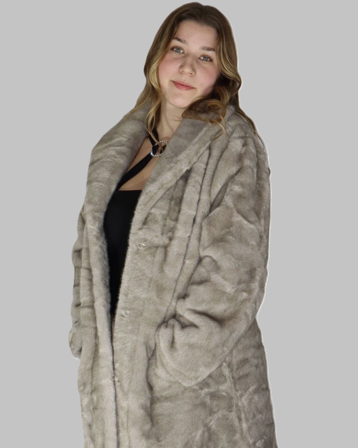 Indulge in the ultimate expression of glamour with the Felautia Luxe Long Fur Jacket. Crafted from ultra-soft, high-quality faux fur with a rich, full-bodied texture, this coat is designed to make an entrance. The elegant stone-embellished buttons add a touch of sparkle, while the gold-tone metal belt clip cinches the waist for a refined silhouette. The interior features a smooth leather-look lining (non-leather) for a sophisticated finish and added comfort.