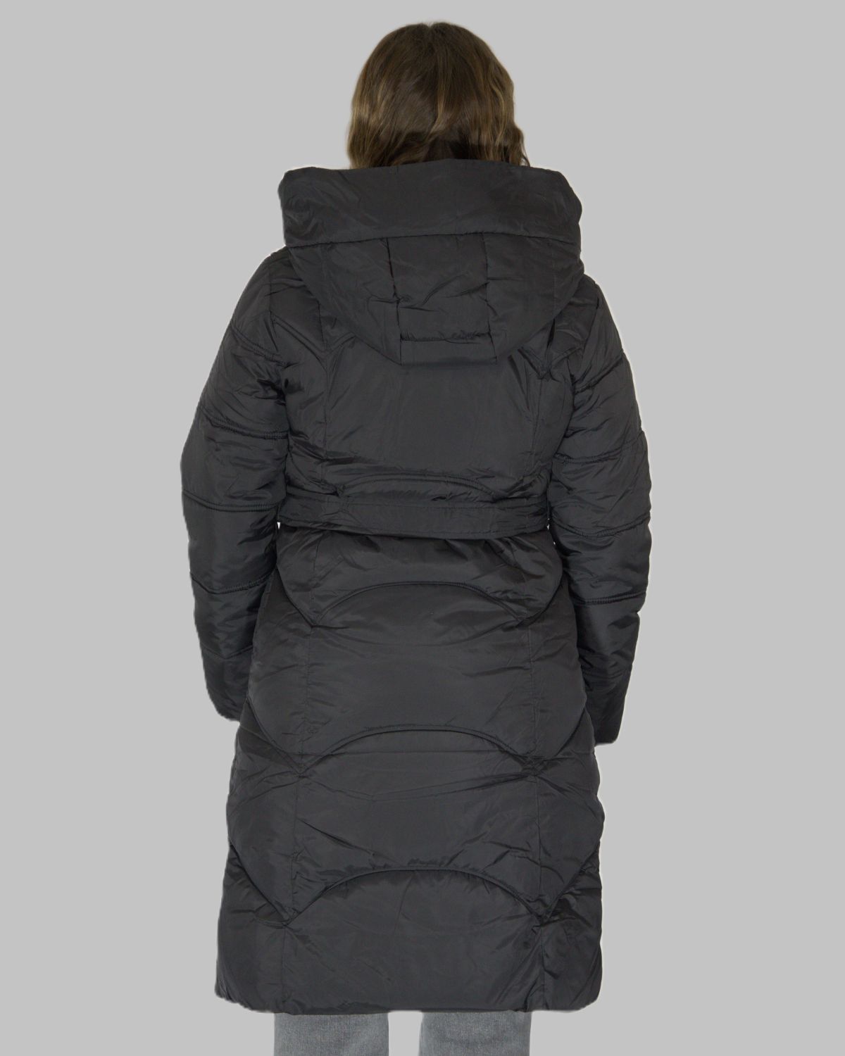 Design: Long silhouette with unique stitching pattern for a refined finish